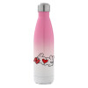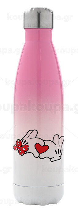 Love hands, Μεταλλικό παγούρι θερμός Ροζ/Λευκό (Stainless steel), διπλού τοιχώματος, 500ml