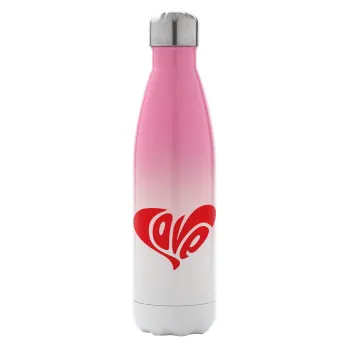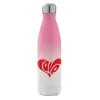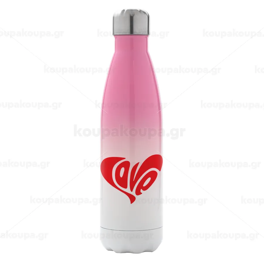 Love, Μεταλλικό παγούρι θερμός Ροζ/Λευκό (Stainless steel), διπλού τοιχώματος, 500ml