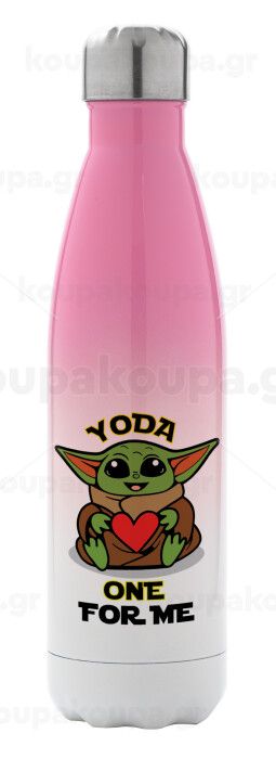 Yoda, one for me , Μεταλλικό παγούρι θερμός Ροζ/Λευκό (Stainless steel), διπλού τοιχώματος, 500ml