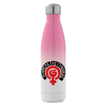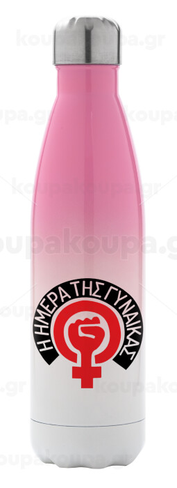 Ημέρα της γυναίκας, Μεταλλικό παγούρι θερμός Ροζ/Λευκό (Stainless steel), διπλού τοιχώματος, 500ml