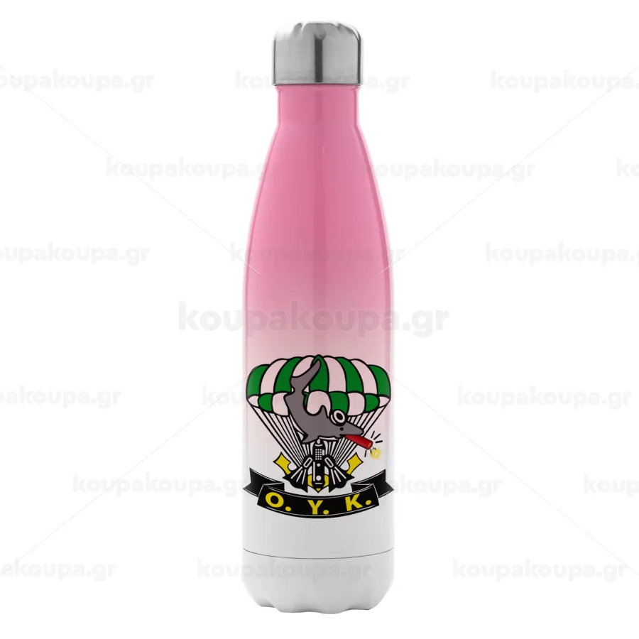 Ο.Υ.Κ., Μεταλλικό παγούρι θερμός Ροζ/Λευκό (Stainless steel), διπλού τοιχώματος, 500ml