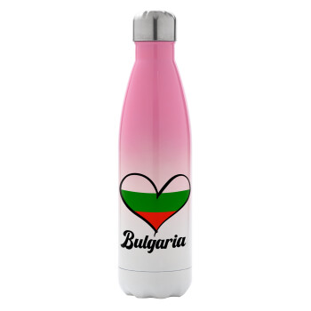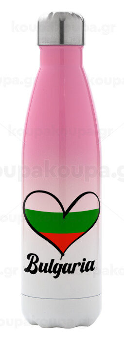 Bulgaria flag, Μεταλλικό παγούρι θερμός Ροζ/Λευκό (Stainless steel), διπλού τοιχώματος, 500ml