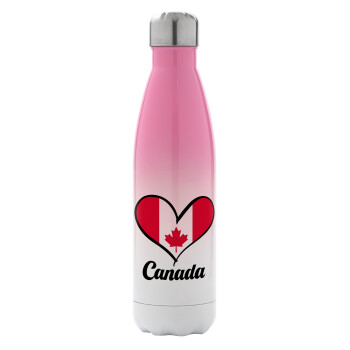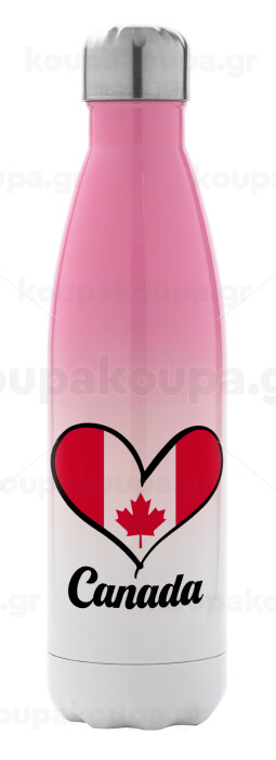 Canada flag, Μεταλλικό παγούρι θερμός Ροζ/Λευκό (Stainless steel), διπλού τοιχώματος, 500ml