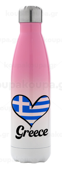Greece flag, Μεταλλικό παγούρι θερμός Ροζ/Λευκό (Stainless steel), διπλού τοιχώματος, 500ml
