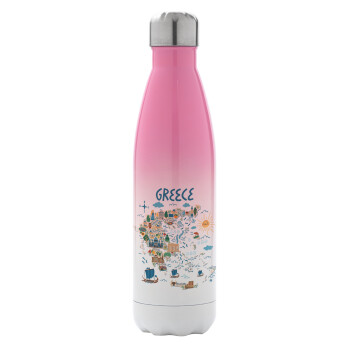 Χάρτης Ελλάδος, Μεταλλικό παγούρι θερμός Ροζ/Λευκό (Stainless steel), διπλού τοιχώματος, 500ml