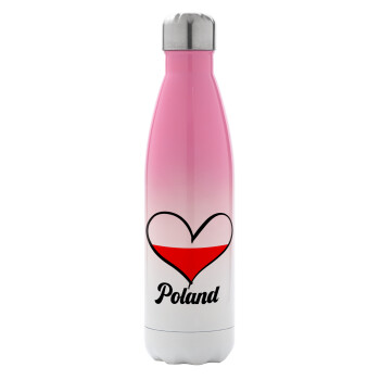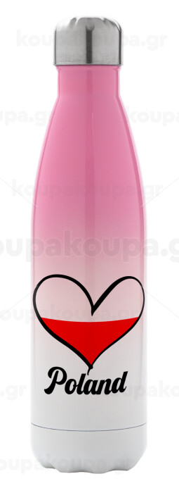 Poland flag, Μεταλλικό παγούρι θερμός Ροζ/Λευκό (Stainless steel), διπλού τοιχώματος, 500ml