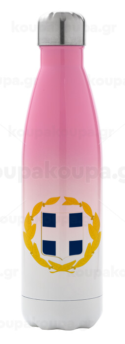 Hellas Εθνόσημο, Μεταλλικό παγούρι θερμός Ροζ/Λευκό (Stainless steel), διπλού τοιχώματος, 500ml