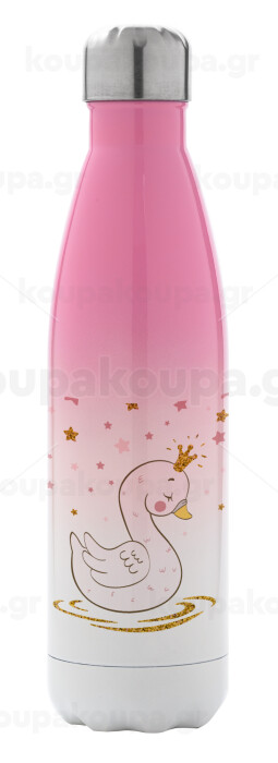 Κύκνος με στέμα, Μεταλλικό παγούρι θερμός Ροζ/Λευκό (Stainless steel), διπλού τοιχώματος, 500ml