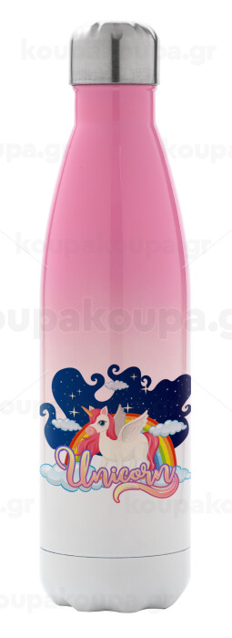 Μονόκερος, Μεταλλικό παγούρι θερμός Ροζ/Λευκό (Stainless steel), διπλού τοιχώματος, 500ml