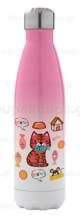 Cats and Fishes, Μεταλλικό παγούρι θερμός Ροζ/Λευκό (Stainless steel), διπλού τοιχώματος, 500ml