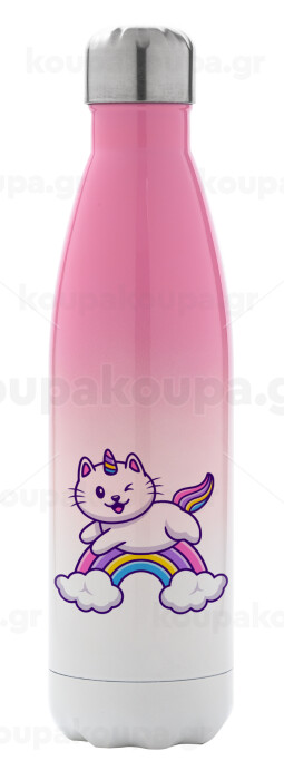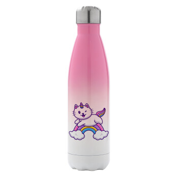 Cute cat unicorn, Μεταλλικό παγούρι θερμός Ροζ/Λευκό (Stainless steel), διπλού τοιχώματος, 500ml