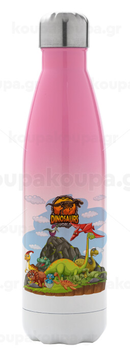 Dinosaur's world, Μεταλλικό παγούρι θερμός Ροζ/Λευκό (Stainless steel), διπλού τοιχώματος, 500ml