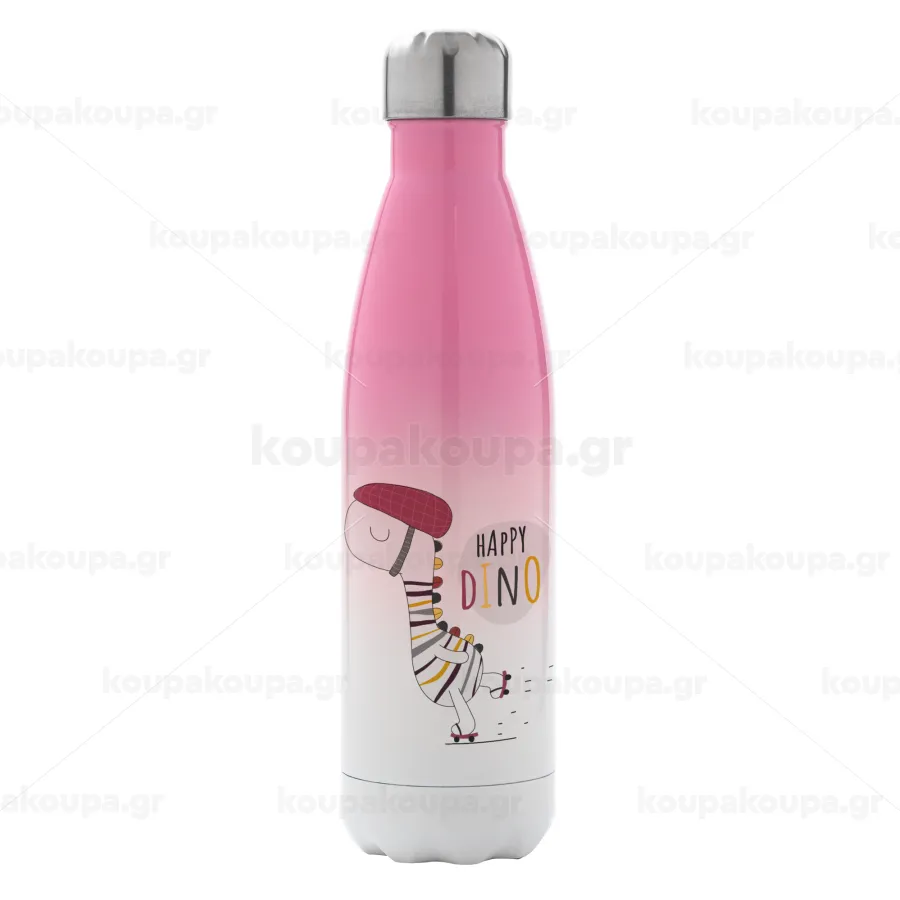 Happy Dino, Μεταλλικό παγούρι θερμός Ροζ/Λευκό (Stainless steel), διπλού τοιχώματος, 500ml