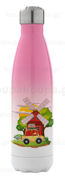 Toy car, Μεταλλικό παγούρι θερμός Ροζ/Λευκό (Stainless steel), διπλού τοιχώματος, 500ml