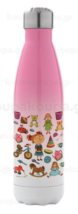 Toys Girl, Μεταλλικό παγούρι θερμός Ροζ/Λευκό (Stainless steel), διπλού τοιχώματος, 500ml