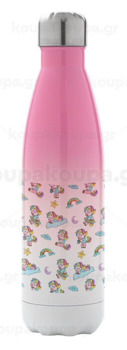 Unicorn pattern, Μεταλλικό παγούρι θερμός Ροζ/Λευκό (Stainless steel), διπλού τοιχώματος, 500ml