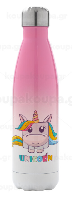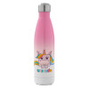 Unicorns cube, Μεταλλικό παγούρι θερμός Ροζ/Λευκό (Stainless steel), διπλού τοιχώματος, 500ml