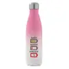 BABY, MOMMY, DADDY Low battery, Μεταλλικό παγούρι θερμός Ροζ/Λευκό (Stainless steel), διπλού τοιχώματος, 500ml