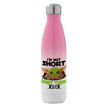 I'm not short, i'm Baby Yoda size, Μεταλλικό παγούρι θερμός Ροζ/Λευκό (Stainless steel), διπλού τοιχώματος, 500ml