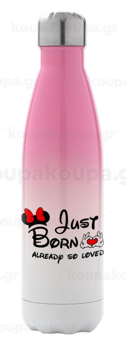 Just born already so loved, Μεταλλικό παγούρι θερμός Ροζ/Λευκό (Stainless steel), διπλού τοιχώματος, 500ml