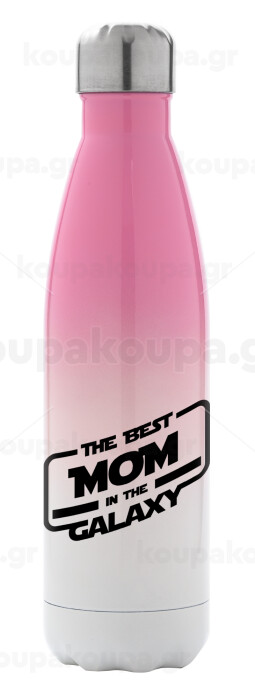 The Best MOM in the Galaxy, Μεταλλικό παγούρι θερμός Ροζ/Λευκό (Stainless steel), διπλού τοιχώματος, 500ml