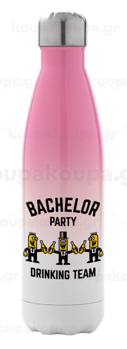 Bachelor Party Drinking Team, Μεταλλικό παγούρι θερμός Ροζ/Λευκό (Stainless steel), διπλού τοιχώματος, 500ml
