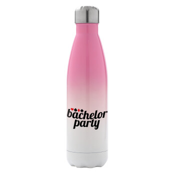 Bachelor party, Μεταλλικό παγούρι θερμός Ροζ/Λευκό (Stainless steel), διπλού τοιχώματος, 500ml