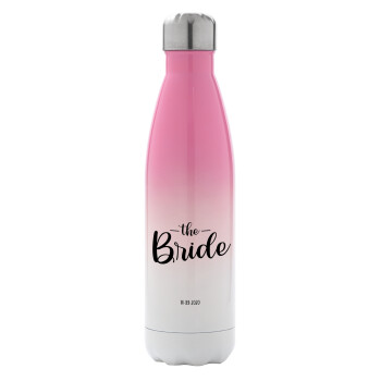 Groom & Bride (Bride), Μεταλλικό παγούρι θερμός Ροζ/Λευκό (Stainless steel), διπλού τοιχώματος, 500ml
