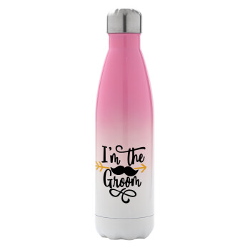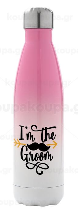 I'm the groom mustache, Μεταλλικό παγούρι θερμός Ροζ/Λευκό (Stainless steel), διπλού τοιχώματος, 500ml