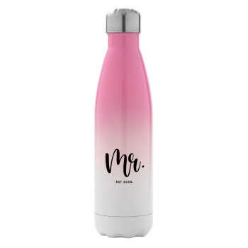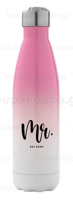 Mr & Mrs (Mr), Μεταλλικό παγούρι θερμός Ροζ/Λευκό (Stainless steel), διπλού τοιχώματος, 500ml
