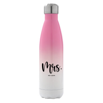Mr & Mrs (Mrs), Μεταλλικό παγούρι θερμός Ροζ/Λευκό (Stainless steel), διπλού τοιχώματος, 500ml