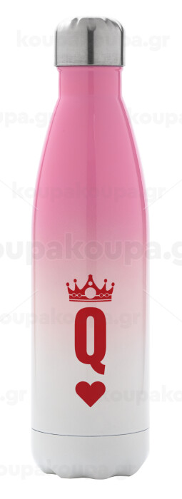 Queen, Μεταλλικό παγούρι θερμός Ροζ/Λευκό (Stainless steel), διπλού τοιχώματος, 500ml