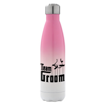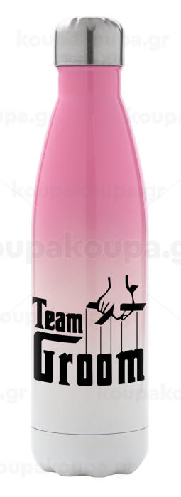 Team Groom, Μεταλλικό παγούρι θερμός Ροζ/Λευκό (Stainless steel), διπλού τοιχώματος, 500ml