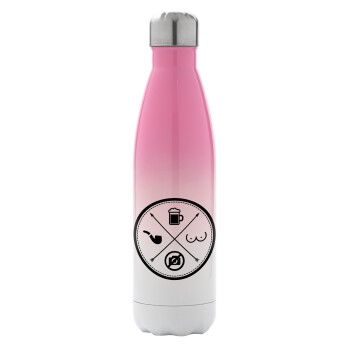 The Bachelor Rules, Μεταλλικό παγούρι θερμός Ροζ/Λευκό (Stainless steel), διπλού τοιχώματος, 500ml