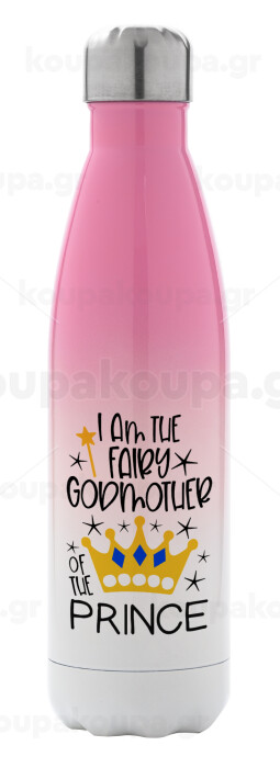I am the fairy Godmother of the Prince, Μεταλλικό παγούρι θερμός Ροζ/Λευκό (Stainless steel), διπλού τοιχώματος, 500ml