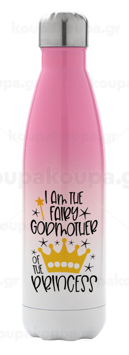 I am the fairy Godmother of the Princess, Μεταλλικό παγούρι θερμός Ροζ/Λευκό (Stainless steel), διπλού τοιχώματος, 500ml