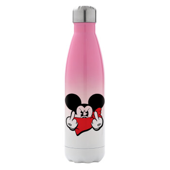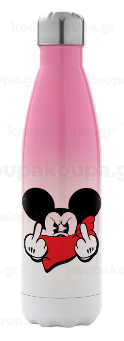 Mickey fuck off, Μεταλλικό παγούρι θερμός Ροζ/Λευκό (Stainless steel), διπλού τοιχώματος, 500ml