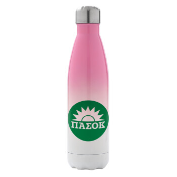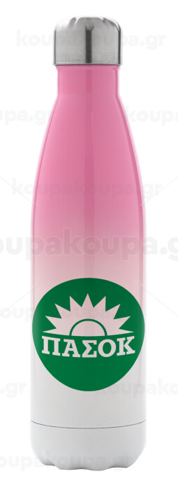 ΠΑΣΟΚ Πράσινο, Μεταλλικό παγούρι θερμός Ροζ/Λευκό (Stainless steel), διπλού τοιχώματος, 500ml