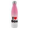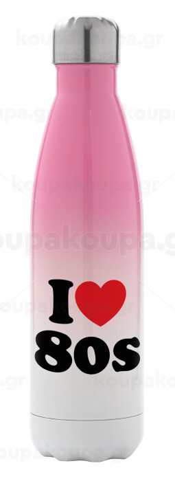 I Love 80s, Μεταλλικό παγούρι θερμός Ροζ/Λευκό (Stainless steel), διπλού τοιχώματος, 500ml