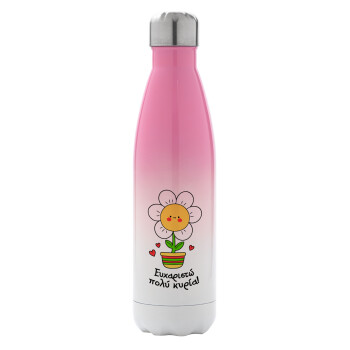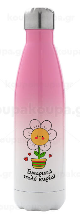 Ευχαριστώ πολύ κυρία!!!, Μεταλλικό παγούρι θερμός Ροζ/Λευκό (Stainless steel), διπλού τοιχώματος, 500ml