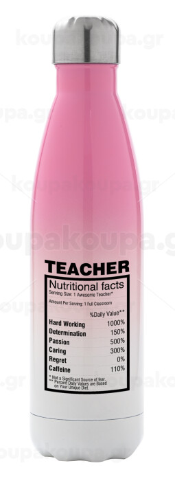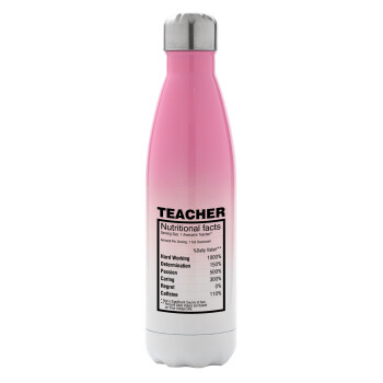 Τα συστατικά του δασκάλου, Μεταλλικό παγούρι θερμός Ροζ/Λευκό (Stainless steel), διπλού τοιχώματος, 500ml