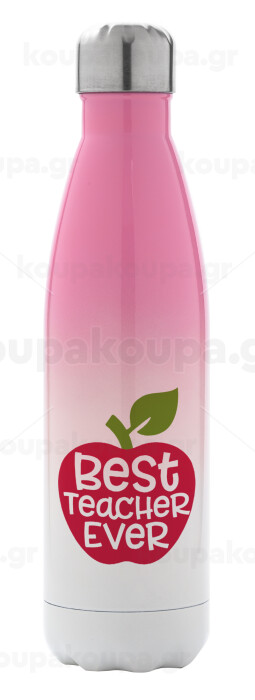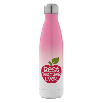 best teacher ever, apple!, Μεταλλικό παγούρι θερμός Ροζ/Λευκό (Stainless steel), διπλού τοιχώματος, 500ml