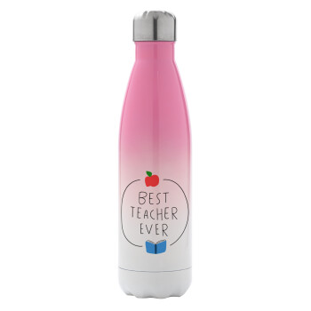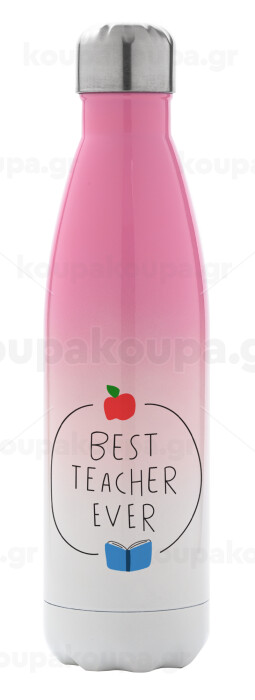 Best teacher ever, Μεταλλικό παγούρι θερμός Ροζ/Λευκό (Stainless steel), διπλού τοιχώματος, 500ml