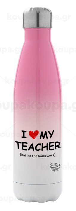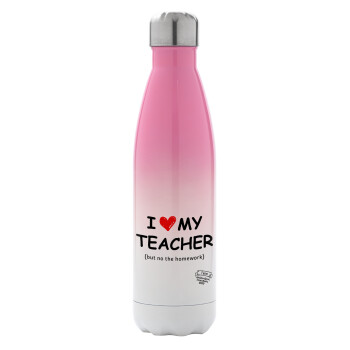 i love my teacher but no the homework, Μεταλλικό παγούρι θερμός Ροζ/Λευκό (Stainless steel), διπλού τοιχώματος, 500ml