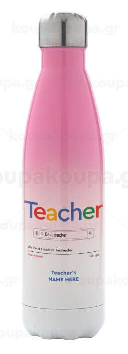Searching for Best Teacher..., Μεταλλικό παγούρι θερμός Ροζ/Λευκό (Stainless steel), διπλού τοιχώματος, 500ml