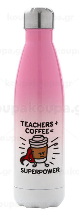 Teacher Coffee Super Power, Μεταλλικό παγούρι θερμός Ροζ/Λευκό (Stainless steel), διπλού τοιχώματος, 500ml