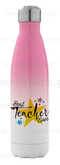 Teacher super star!!!, Μεταλλικό παγούρι θερμός Ροζ/Λευκό (Stainless steel), διπλού τοιχώματος, 500ml