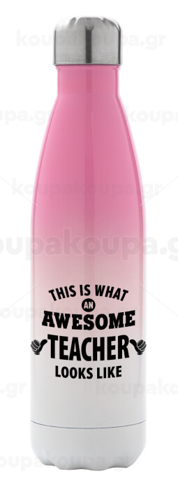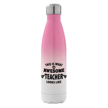 This is what an awesome teacher looks like hands!!! , Μεταλλικό παγούρι θερμός Ροζ/Λευκό (Stainless steel), διπλού τοιχώματος, 500ml
