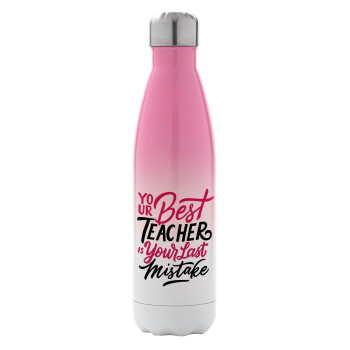 Typography quotes your best teacher is your last mistake, Μεταλλικό παγούρι θερμός Ροζ/Λευκό (Stainless steel), διπλού τοιχώματος, 500ml