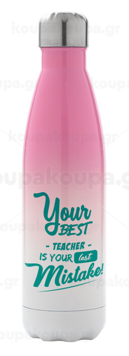 Your best teacher is your last mistake, Μεταλλικό παγούρι θερμός Ροζ/Λευκό (Stainless steel), διπλού τοιχώματος, 500ml